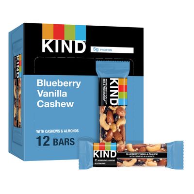 KIND Bars, Blueberry Vanilla Cashew, Healthy Snacks, Gluten Free, 5g Protein, 12 Count