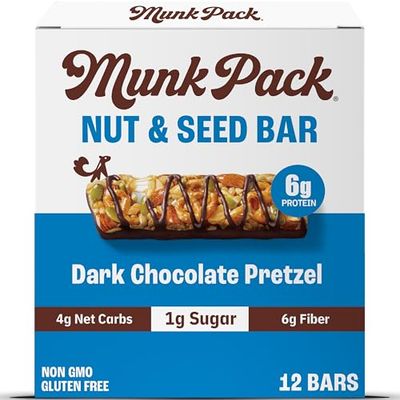 Munk Pack Keto Snack Bars, Sea Salt Dark Chocolate - Low Carb Nut Bar with 5g Protein, 1g Sugar with Allulose - Gluten Free & Low Glycemic - 12 Count