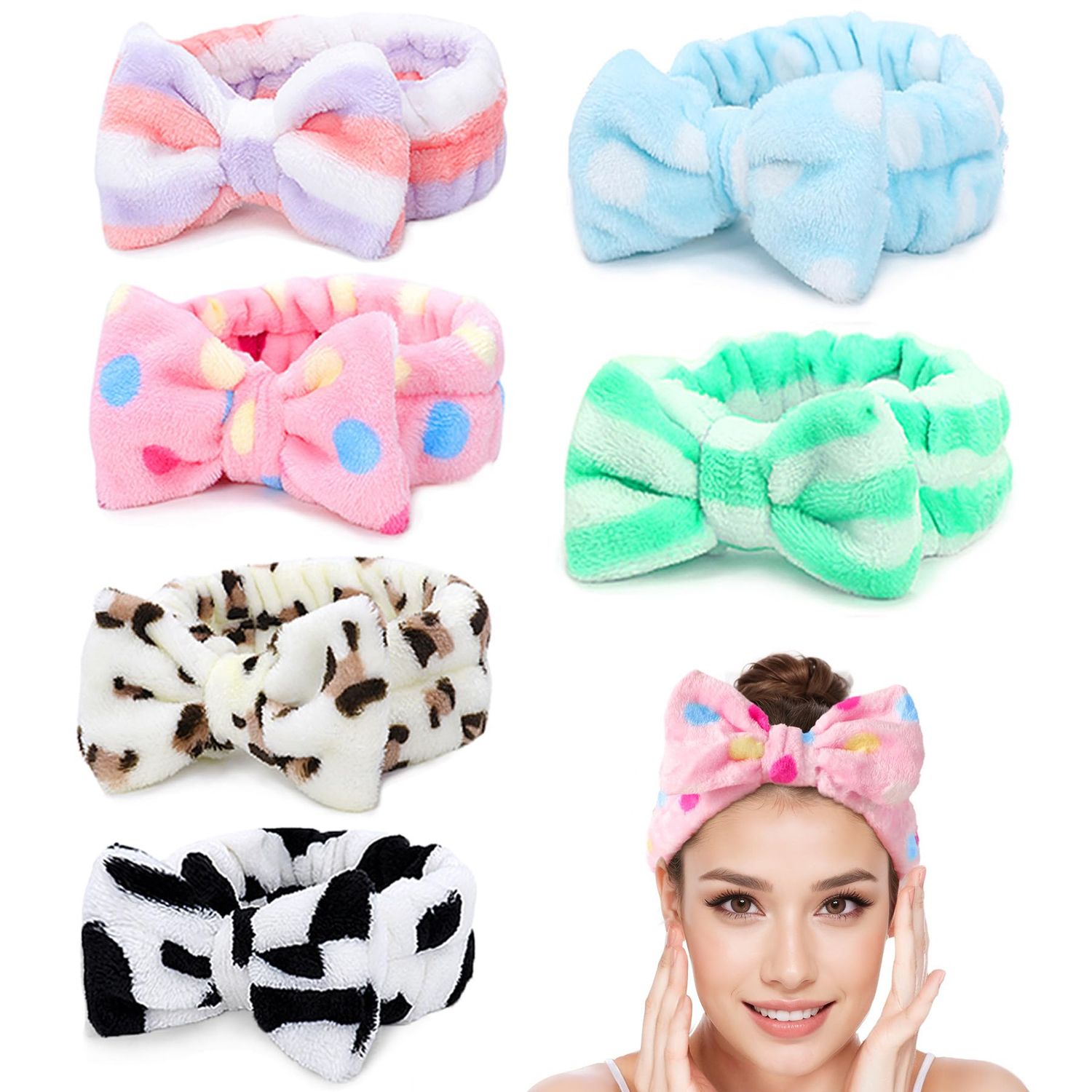 Description Lovely Hair Band: It has cute bow-knot on top that makes it fun and charming compared to a towel or regular headband. Adorable and stylish design makes it super cute and special on you. Comfortable Headbands: It has elastisity, you can adjust it to the size which fit you most. It is thick, cushy, soft, adorable and washable, provides you a comfortable feeling and better water absorbent. Widely Used in Your Daily Life: For its design, it is a helper to keep your hair away from your face when you are wearing makeup or cleansing your face, applying mask, doing spa facials. If you like, its also can be used as a hair accessory, and if you have a daughter, she must love it very much!