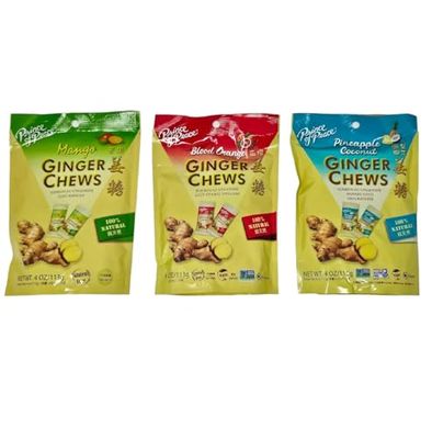 Experience the natural goodness of ginger with Prince of Peace Ginger Chews. Individually wrapped for convenience, each chew is infused with 100% real ginger, promoting digestive health and soothing the stomach with a zesty citrus burst. Prince of Peace Ginger Chews are an easy and tasty way for you to enjoy ginger infused with a variety of fruity flavors on the go, the flavors include Lemon, Lychee, Blood Orange, and Mango.