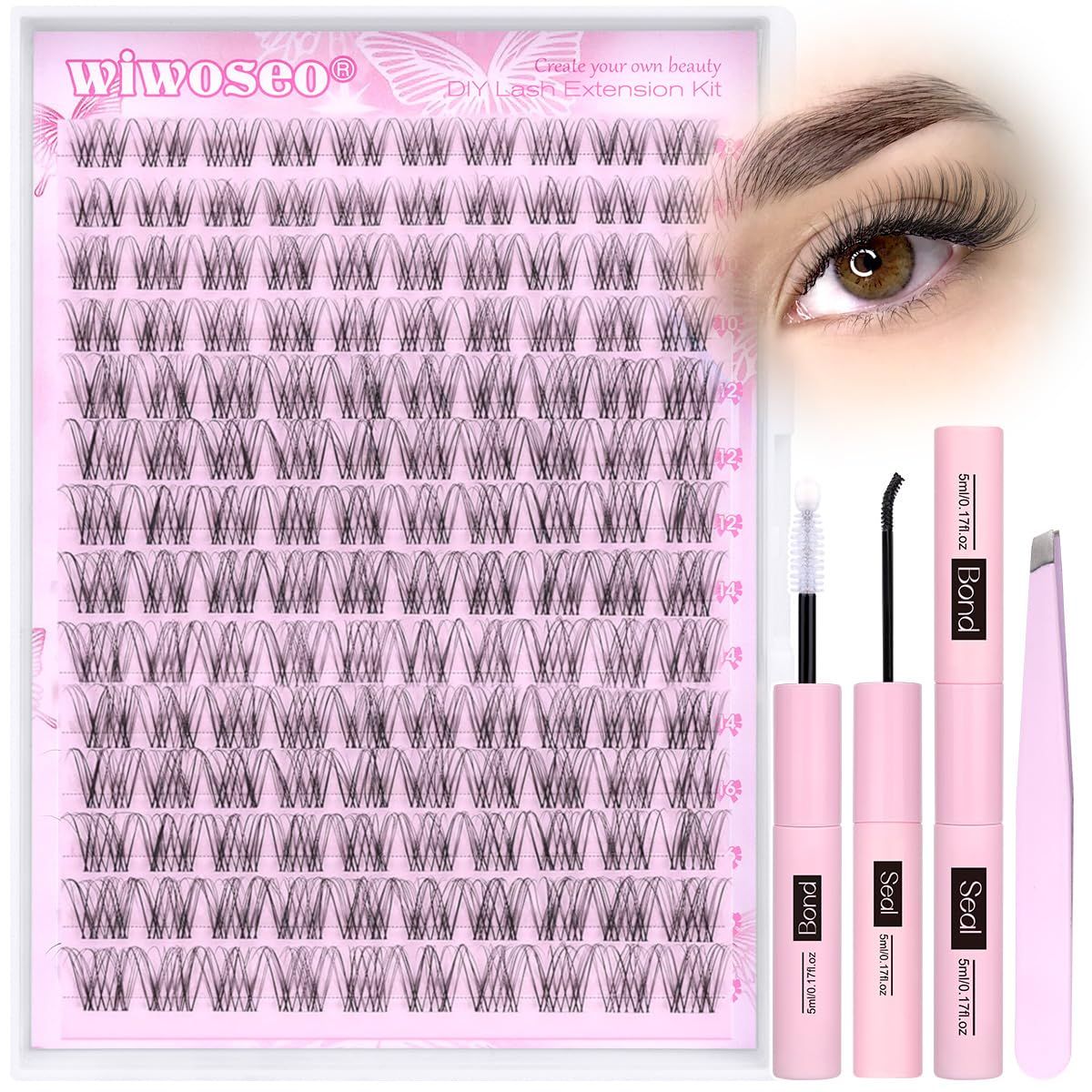 wiwoseo Natural Lash Clusters Kit Eyelash Clusters Clear Band Lash Extension Kit Cluster Eyelash Extensions Eyelash Extension Kit Invisible Band Clusters Lashes with Lash Bond and Seal for Beginners